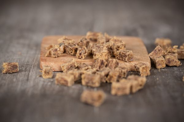 99% Hirsch luftgetrocknet, eine Prise Meersalz und 1% kaltgepresste pflanzliche Öle machen unsere soften Cubes aus, die sich perfekt fürs Training eignen und als kleiner Snack zwischendurch.