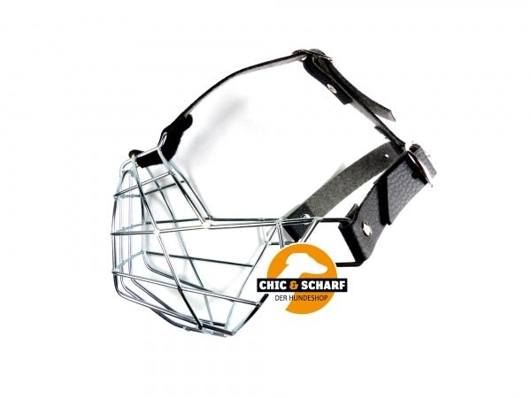 Stabiler Drahtmaulkorb für Hunde mit sehr kurzer Schnauze mit Stirnriemen